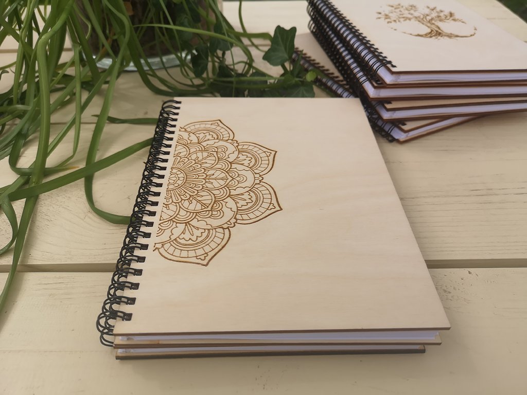 Dřevěný zápisník s laserovým gravírováním – MANDALA A5 čistý